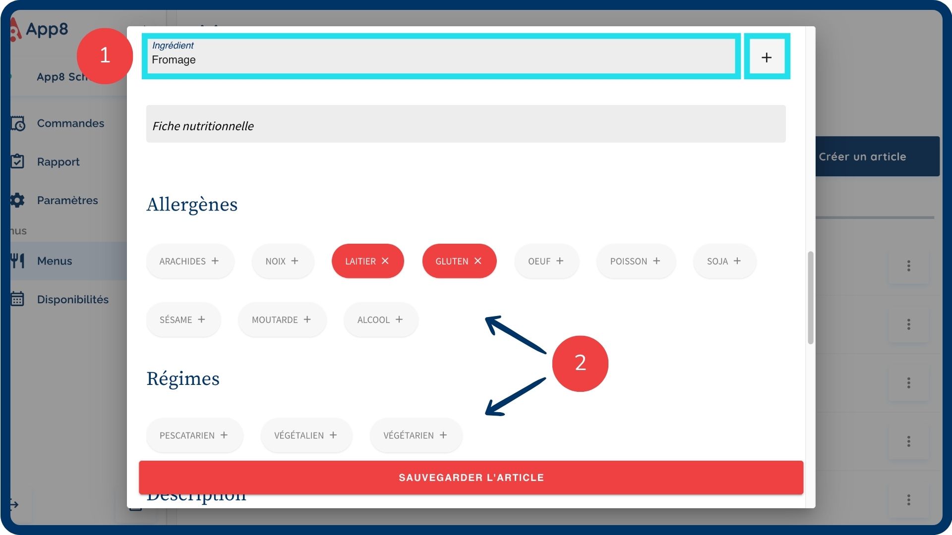 Sélectionnez les allergènes et les catégories de régimes alimentaires applicables.